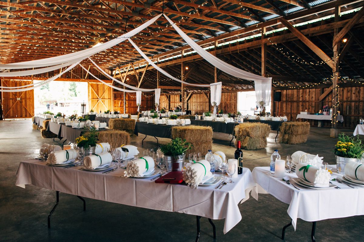 Our clear-span 8,000 square foot barn is ideal for receptions, banquets, dances, classes, or retreats. The barn boasts a concrete floor and large sliding doors on all four sides. The ends open to breathtaking views of mountains, fields, ponds, and our famous sunsets.